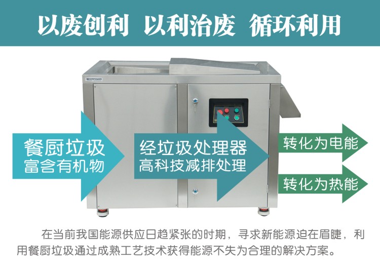 產(chǎn)品特點:商用餐廚垃圾處理機體積小、操作便捷、處理成本低廉,可對普通的泔水及餐廚垃圾進行處理,運行過程實現(xiàn)自動化。適用于各種規(guī)模的酒店、餐飲飯店、院校食堂及企事業(yè)單位食堂等餐廚垃圾集中的場所,不通過集中回收及時地對餐廚垃圾進行處理,該機器技術含量高、運作穩(wěn)定性強。